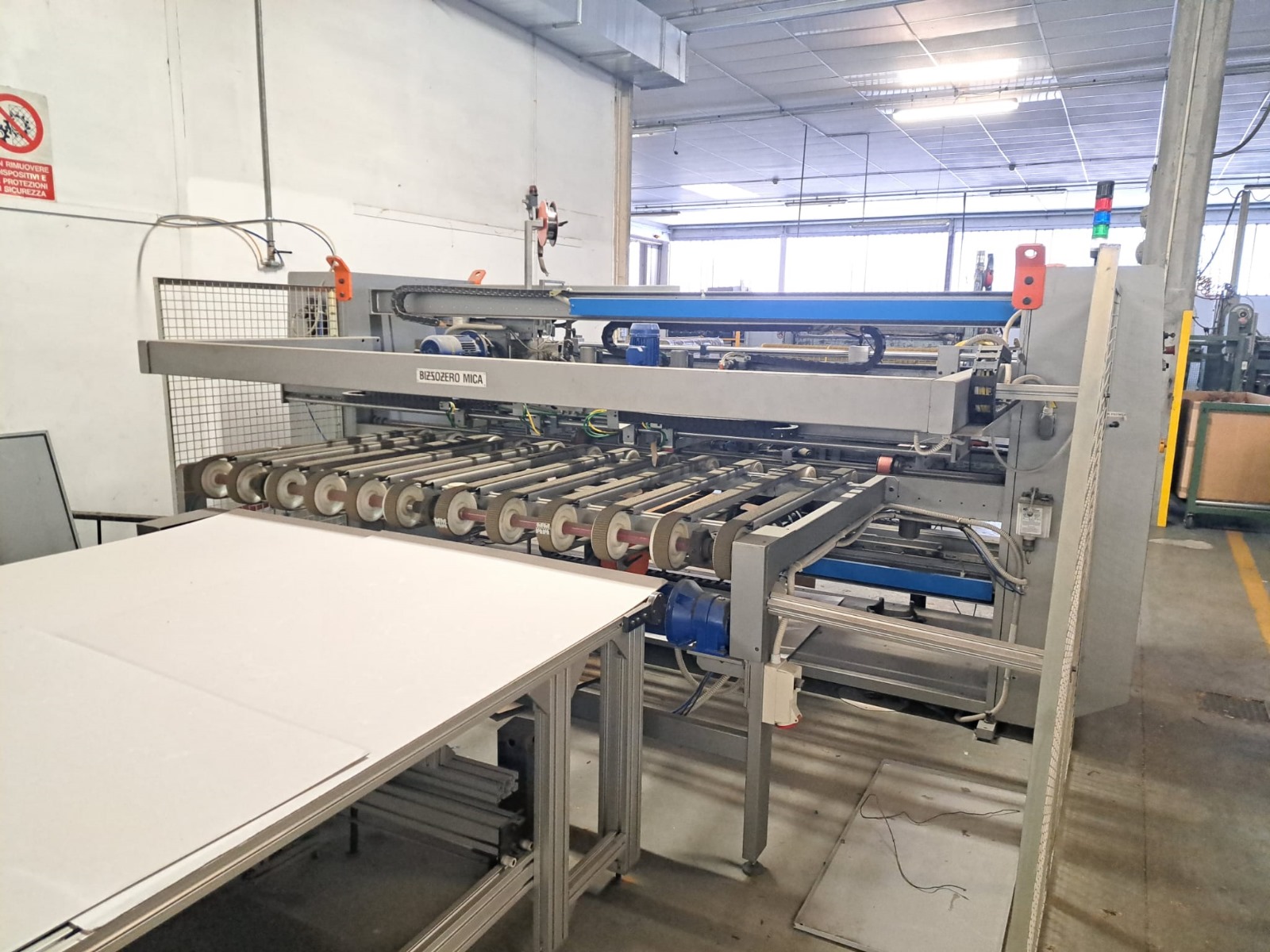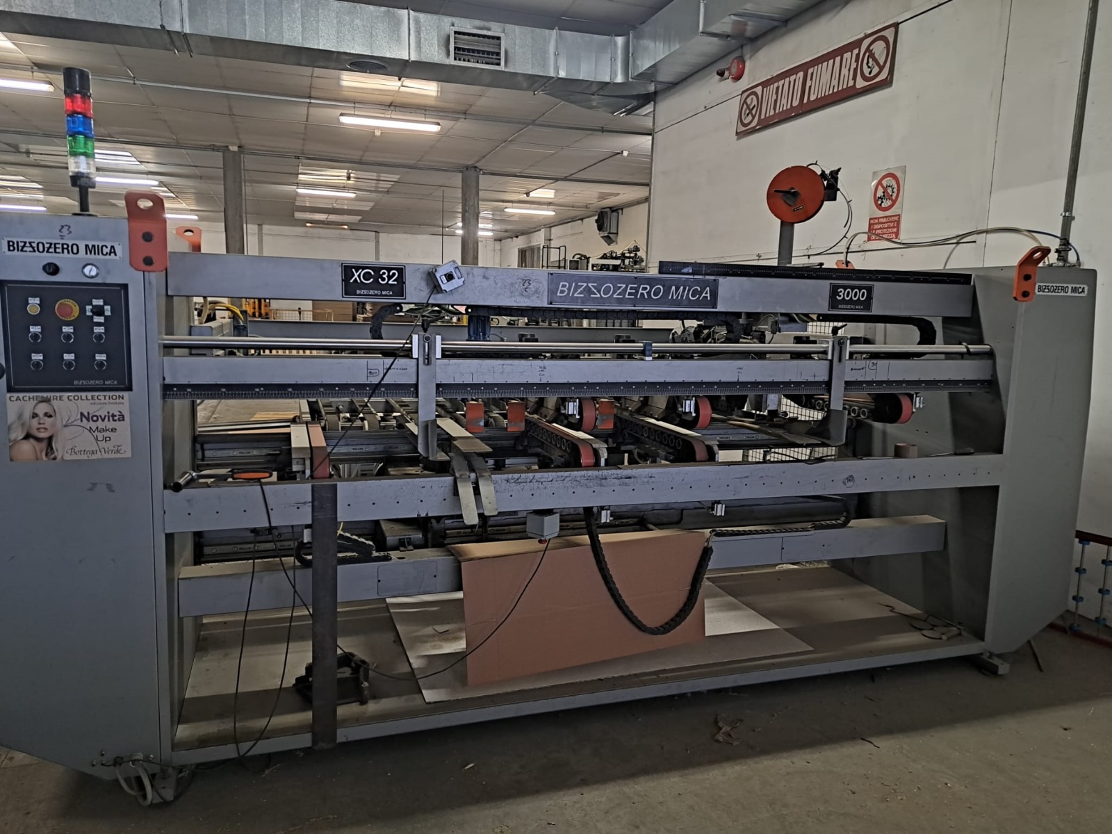 Cucitrice industriale Bizzozzero MICA XC 32–3000, anno 2005, con 2 teste di cucitura. Robusta, certificata CE, ideale per cartotecnica e lavorazioni su cartone ondulato. Subito disponibile.